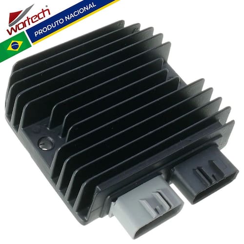 Marca: Wortech (Indústria Brasileira)Código:WC-411119/130Características do produto: - Tecnologia: Circuito com Transistor (MOSFET)- Melhor Eficiência que os circuitos (Shunt fechado)- Temperatura de trabalho: de 40°C a 60°C- Potência Máxima: 620W- Tensão de saída: 13,6 a 14,8V- Amperagem: 80A- Conector: Em Nylon de alta qualidade- Terminais: metálicos estanhados de alta condutividade - Dissipação: Carcaça em alumínio com alto poder de refrigeração- Dimensões da carcaça (Altura x Largura x Comprimento): 37 x 120 x 110 mm- Distância entre os furos: 100 mm - Espessura da parte de fixação: 15 mmConexões: - 01 > Conector preto 2 vias (Positivo e negativo) - 01 > Conector cinza 3 vias (3 fases do estator)Itens Inclusos: - 01 > Regulador Retificador- 01 > Certificado de garantiaGarantia total de 12 meses