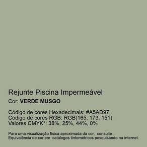 Características Rejunte Piscina Impermeável é destinado ao rejuntamento e impermeabilização de pastilhas, revestimentos cerâmicos, porcelanatos de médios e grandes formatos, e pedras naturais. Possui alta aderência e resistência, produto inodoro e não tóxico. Pode ser aplicada em ambientes internos e externos. Atende aos requisitos das normas ABNT NBR 14992.