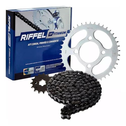 Nosso Reconhecido Kit Titanium É Produzido Em Aço 1045 Riffel E Possui Rendimento Até 30% Maior Em Comparação Ao Mínimo Aceito Pela Norma Do Inmetro, Ou Seja, Que O Aço Utilizado Nos Kits Mais Comumente Encontrados No Mercado. Este Kit É Produzido Especialmente para Motociclistas Que Buscam Peças De Durabilidade, Qualidade E Segurança. Ele É Composto Por Coroa E Pinhão Em Aço 1045 E Corrente Reforçada E É Indicado Para Motociclistas Que Enfrentam O Dia-A-Dia De Nossas Cidades