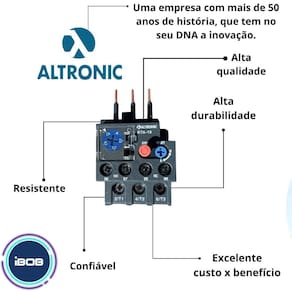 Características técnicas: - marca: altronic; - aplicação: relés destinados a proteção de sobrecarga em motores e sensíveis a falta de fase; - corrente: 1,6- 2,5a; - contato auxiliar: 1na + 1nf; - limite de temperatura de trabalho: -25 ºc+ 50ºc; - tensão nominal de isolamento ui v : 690v; - voltagem: 220v até 690v.