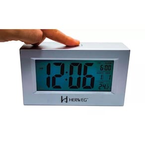 Relógio Despertador Digital 2972 Original Herweg Garantia de 1 ano. Funções: - Iluminação noturna em led ( Podendo ficar acesa o tempo que desejar através de sensor ou clicar para iluminar apenas 5 segundos ) - Sensor de toque no botão de luz - Calendário em Inglês - Função soneca - Termômetro - Alarme