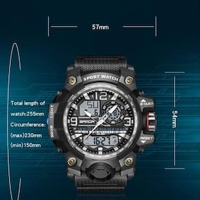 Especificações: [Mostrador analógico-digital:] Este relógio oferece tanto a comodidade do mostrador digital quanto o charme do analógico, tudo em um display único. [Design robusto:] Com uma espessura de 15mm e uma largura de banda de 20 a 24mm, feito em resina de alta qualidade, este relógio foi projetado para aqueles que exigem durabilidade. [Funcionalidades inteligentes:] Inclui cronômetro, tela de LED e função de alarme, garantindo que você esteja sempre no controle de seus compromissos e atividades. [Resistência fantástica à água:] Este relógio é adequado para nadar, graças à resistência de até 5bar, o que o torna perfeito para atividades aquáticas. [Estilo esportivo sofisticado:] Com uma fivela prática e um aro em hardlex durável, combinado com o movimento de origem de alta tecnologia, este relógio garante estilo e confiabilidade em um só adornamento.