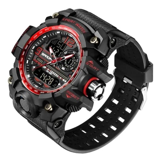 Especificações: [Mostrador analógico-digital:] Este relógio oferece tanto a comodidade do mostrador digital quanto o charme do analógico, tudo em um display único. [Design robusto:] Com uma espessura de 15mm e uma largura de banda de 20 a 24mm, feito em resina de alta qualidade, este relógio foi projetado para aqueles que exigem durabilidade. [Funcionalidades inteligentes:] Inclui cronômetro, tela de LED e função de alarme, garantindo que você esteja sempre no controle de seus compromissos e atividades. [Resistência fantástica à água:] Este relógio é adequado para nadar, graças à resistência de até 5bar, o que o torna perfeito para atividades aquáticas. [Estilo esportivo sofisticado:] Com uma fivela prática e um aro em hardlex durável, combinado com o movimento de origem de alta tecnologia, este relógio garante estilo e confiabilidade em um só adornamento.
