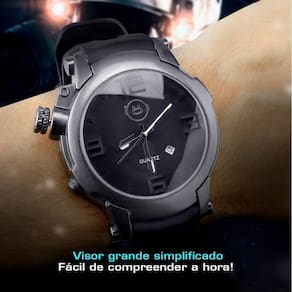 A pulseira confeccionada com material semelhante ao de pneu de caminhão é um destaque marcante deste relógio. Não apenas adiciona um toque de robustez e masculinidade, mas também garante uma resistência ultra durável, tornando este relógio um parceiro confiável para o homem moderno.