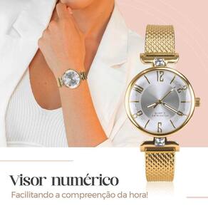 Relógio Feminino Analógico Orizom Maria Dourado Banhado à Prova D'água Pulseira em Silicone AjustávelChegou o momento de adicionar um toque de elegância e sofisticação ao seu visual com o relógio feminino Orizom Maria. Com seu design elegante e funcionalidade impecável, este relógio é a escolha perfeita para qualquer ocasião.Características:- Material: Aço inoxidável banhado a ouro dourado, garantindo durabilidade e um brilho luxuoso.- Tipo de Display: Analógico, proporcionando uma leitura clara e precisa do tempo.- Resistência à Água: Prova d'água, ideal para uso diário e ocasional, mantendo o relógio protegido em qualquer situação.- Pulseira: Pulseira em silicone ajustável, proporcionando conforto e praticidade para se adaptar a qualquer pulso.- Estilo: Elegante e versátil, adequado para diversas ocasiões, do dia a dia a eventos especiais.Conteúdo da Embalagem:- 1 Relógio Feminino Analógico Orizom Maria Dourado Banhado à Prova D'água Pulseira em Silicone Ajustável.- 1 Caixa Premium Orizom Maria, ideal para presentear ou armazenar o relógio com segurança e estilo.Adicione um toque de luxo ao seu visual ou presenteie alguém especial com este relógio feminino Orizom Maria. Combinando elegância e funcionalidade, este relógio é um item indispensável em qualquer coleção de acessórios femininos. Aproveite essa oportunidade e adquira o seu agora!