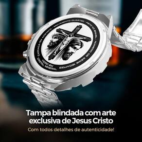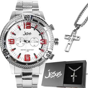 Relógio Aço Inox Masculino Prata + Cordão Pingente Caixa Robusto Pesado Grande Prateado Apresentamos um kit exclusivo e sofisticado, perfeito para homens que buscam estilo, qualidade e espiritualidade. Este conjunto premium inclui um relógio masculino elegante, um cordão grosso trançado, um pingente em formato de cruz e uma caixa premium com o nome de Jesus gravado a laser. Ideal para uso próprio ou como um presente especial. Itens Inclusos: 1 Relógio masculino analógico: - Confeccionado em aço inox de alta qualidade com acabamento prata - Mostrador prata com números vermelhos, podendo ser enviado com outras cores conforme disponibilidade - Detalhes do mostrador, incluindo cronógrafos ilustrativos e coroa, podem variar de acordo com a montagem - Tampa traseira blindada com arte exclusiva de Jesus Cristo e detalhes de autenticidade do produto - Design elegante e robusto, ideal para diversas ocasiões 1 Cordão masculino grosso trançado: - Feito em aço inox com acabamento prata de alta qualidade - Comprimento aproximado de 67 cm, oferecendo durabilidade e estilo marcante 1 Pingente em formato de cruz: - Tamanho médio confeccionado em aço inox com detalhes internos e externos que combinam fé e sofisticação 1 Caixa premium preta: - Nome de Jesus gravado a laser com altíssima precisão em letras especiais - Design sofisticado, ideal para guardar os itens ou presentear com estilo Características Gerais: - Kit completo que une estilo robusto, qualidade e significado espiritual - Itens versáteis que se adaptam a diferentes estilos e ocasiões, como trabalho, dia a dia, eventos religiosos ou momentos especiais - Uma excelente opção para presentear quem você ama e deseja proteção Cuidados e Recomendações: - Evite contato dos itens com produtos químicos, água salgada e superfícies abrasivas para preservar o brilho e a qualidade - Guarde os itens em local seco e limpo para maior durabilidade : - contra defeitos de fabricação, exceto danos causados por uso inadequado ou exposição a condições não recomendadas Marca: Não Informado