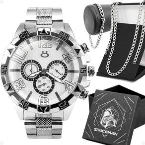 - Relógio Masculino Orizom Spaceman - Tipo: Analógico (ponteiro) - Modelo: Spaceman - Qualidade: Premium - Cor: Prata - Mostrador: Prata (opção na cor branca também disponível) - Material: Aço inoxidável - Resistência à água: Prova d'água - Nota: Detalhes internos do relógio podem variar de acordo com montagem no ato de sua compra