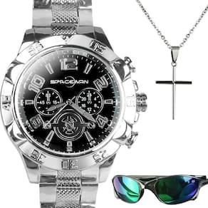 Kit Masculino Orizom Spaceman Relógio + Corrente + Pingente + Óculos de Sol