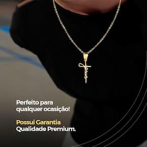 1 Pingente pequeno em formato de cruz com a escrita Jesus:
