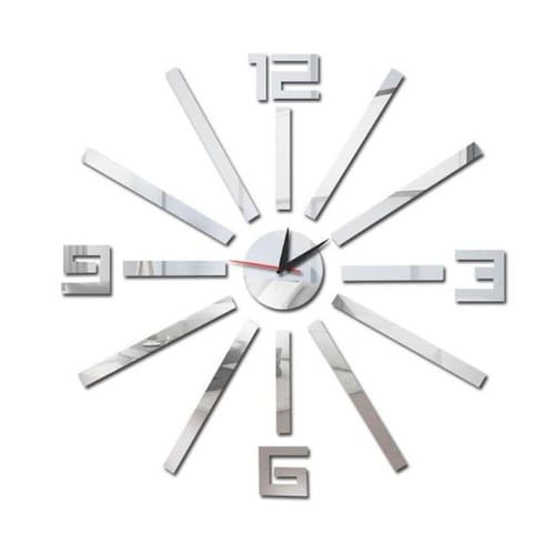Relógio Decorativo Parede Traços Moderno Acrílico Sala Quarto Escritório Montado pode chegar até 40cm de diâmetro Composto por: 8 traços: 18cm 4 traços: 10cm Números: 6cm de altura Miolo relógio: 10cm Relógio de pendurar Material: Acrílico Características: Acrílico cortado a laser, cortes perfeitos Funcionamento por bateria AA 1,5 volt não inclusa Ean: 2960008441664
