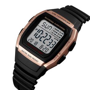 Relógio digital à prova d'água ALCADAN para esportes ao ar livre para homens e mulheres, cronômetro militar Countdown Auto Date Alarm 1278 (ouro rosa)