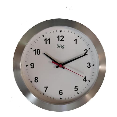 Relógio em alumínio escovado com design simples e elegante que irá completar a decoração do seu ambiente. Excelente qualidade; Ótima opção para decorar a parede de sua casa. Ótima opção também para presentear uma pessoa especial. Especificações: Cor do mostrador: Branco e números Arábicos em preto. Aro: aluminio escovado Tamanho: 27 cm diâmetro Marca: Sieg Garantia: 12 meses Ean: 7898594820196