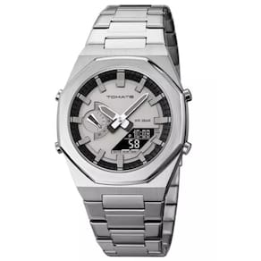 Caracteristicas do produto Marca: Tomate Modelo: MTX-016 Material do produto: Termoplásticos metais e Circuito eletrônico Pulseira metal prata Visor analogico + digital Botões de configuração nas laterais Marca: Não Informado