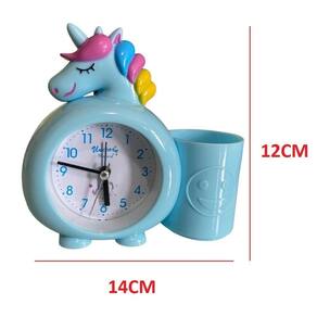 Contém: 1 unidade relógio despertador de mesa com porta caneta unicórnio