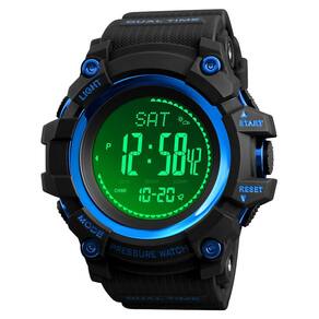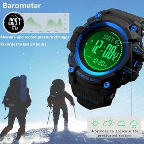 Aviso 1: A temperatura está medindo fora do corpo humano. Ao medir a temperatura, retire-a do pulso Aviso 2: O relógio é um pouco grande. Meça o tamanho do pulso com cuidado antes de comprar. Função esportiva O relógio inclui, como cronômetro, contagem regressiva, pedômetro, horário duplo. O pedômetro e o ritmo podem rastrear seus passos e velocidade de movimento, ajudando você a conhecer a condição do exercício. O armazenamento de memória registraria os dados dos últimos 7 dias de etapas - distância - calorias - tempo esportivo, sem necessidade de conectar o aplicativo. Função de bússola O estilo militar com função de bússola será conveniente para todas as atividades ao ar livre. Com função de bússola e tempo duplo, pode ser fácil de usar para apontar a direção precisa para você a qualquer momento, preparado para entusiastas de aventuras ao ar livre e direção precisa. Função de medição O altímetro mede a altura atual e o histórico de 24 horas com um gráfico de altitude; o barômetro exibe a pressão do ar, o termômetro mede a temperatura de -10° C a 60° C e pode selecionar° C ou ?. Combinar pressão do ar e temperatura pode prever o tempo. Funções e bússola de sobrevivência ao ar livre: trabalho em declinação magnética e calibração manual e calibração rotativa. Em sua localização, quando a pressão do ar aumenta, o tempo pode estar bom; a pressão do ar cai e o tempo fica nublado e chuvoso. Com a exibição da temperatura, o usuário pode visualizar o clima ao ar livre. Modo de trilha (altitude relativa: pode medir a altitude ascendente ou descendente entre o ponto inicial e o ponto de chegada.) Especificação e parâmetro Diâmetro do mostrador: 53 mm/2,09 polegadas Espessura da caixa: 17 mm/0,67 polegadas Largura da pulseira: 22 mm/0,87 polegadas Comprimento da pulseira: 260 cm/10 polegadas Comprimento do pulso: 165-235 mm/6,5-9,3 polegadas Tipo de material da pulseira: PU Material da capa: ABS + PU