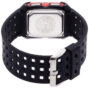 Relógio retangular com display LCD, alarme, cronógrafo, volta, horário duplo, cronômetro de contagem regressiva e funções de horário militar