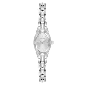 Relógio de pulseira feminino Armitron, 75-3313 — Lente de cristal mineral facetado de parede a parede — Mostrador prateado com ponteiros e marcadores combinando — Pulseira prateada com elos ajustáveis; fecho e extensor para joias — Não é resistente à água