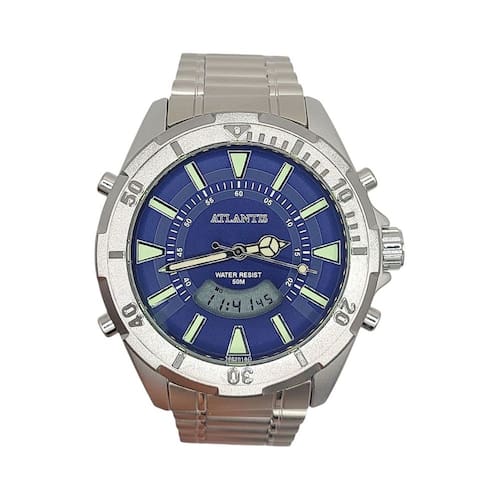 ESPECIFICAÇÕES DO RELÓGIO: Relógio Atlantis autêntico A3482 Analógico e Digital Resistente a Água MARCA: ATLANTIS QUALIDADE: autêntico MATERIAL DA CAIXA: METAL MATERIAL DA PULSEIRA: METAL LARGURA DA CAIXA: 52mm COR DA CAIXA: Prata COR DA PULSEIRA: Prata RESISTENTE A ÁGUA: SIM MOVIMENTO: BATERIA ANALÓGICO