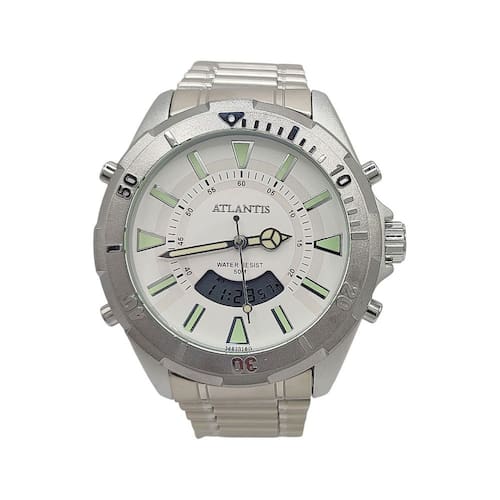 ESPECIFICAÇÕES DO RELÓGIO: Relógio Atlantis autêntico A3482 Analógico e Digital Resistente a Água MARCA: ATLANTIS QUALIDADE: autêntico MATERIAL DA CAIXA: METAL MATERIAL DA PULSEIRA: METAL LARGURA DA CAIXA: 52mm COR DA CAIXA: Prata COR DA PULSEIRA: Prata RESISTENTE A ÁGUA: SIM MOVIMENTO: BATERIA ANALÓGICO