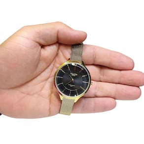 MARCA: Atlantis MODELO: B8004/Atlantis autêntico/Dourado/Social/Estiloso/Feminino/Analógico/Melhor Linha/Marca Atlantis/Médio/Linha Gold/Designer Moderno GÊNERO: Feminino COR DA CAIXA: Dourado COR DO RELÓGIO: Dourado COR DO MOSTRADOR: Preto MATERIAL DA PULSEIRA: Metal MATERIAL DA CAIXA: Metal MODELO DO FECHO: Fivela TIPO DE MOVIMENTO: Bateria TIPO DE VIDRO: Vidro Mineral TAMANHO DA CAIXA INCLUINDO A COROA: 40mm ESPESSURA: 16mm É RESISTENTE À ÁGUA? Sim É ADEQUADO PARA MERGULHO? Não PROFUNDIDADE RESISTÊNCIA À ÁGUA: 50 Metros