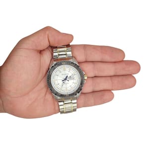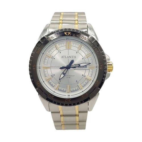 ESPECIFICAÇÕES DO RELÓGIO DE PULSO ATLANTIS SOCIAL MISTO MASCULINO RESISTENTE À ÁGUA: MARCA: Atlantis Sports MODELO: G3392/Atlantis autêntico/Masculino/Analógico/Social/Prático/Moderno/Misto prata e dourado GÊNERO: Masculino COR DA CAIXA: Prateado com detalhe Dourado e Preto COR DO RELÓGIO: Misto COR DO MOSTRADOR: Preto ou Dourado ou Prata MATERIAL DA PULSEIRA: Metal MATERIAL DA CAIXA: Metal MODELO DO FECHO: Fivela Dobrável TIPO DE MOVIMENTO: Bateria TIPO DE VIDRO: Vidro Mineral TAMANHO DA CAIXA INCLUÍDO A COROA: 46mm ESPESSURA: 1cm É RESISTENTE À ÁGUA? Sim É ADEQUADO PARA MERGULHO? Não PROFUNDIDADE DE RESISTÊNCIA À ÁGUA: 50 Metros