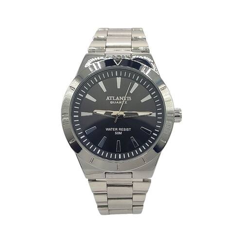 ESPECIFICAÇÕES DO RELÓGIO DE PULSO ATLANTIS SOCIAL PRATEADO MASCULINO RESISTENTE À ÁGUA: MARCA: Atlantis Sports MODELO: G3392/Atlantis autêntico/Masculino/Analógico/Social/Prático/Moderno/ GÊNERO: Masculino COR DA CAIXA: Prateado com detalhe Preto COR DO RELÓGIO: Prata COR DO MOSTRADOR: Preto ou Prata MATERIAL DA PULSEIRA: Metal MATERIAL DA CAIXA: Metal MODELO DO FECHO: Fivela Dobrável TIPO DE MOVIMENTO: Bateria TIPO DE VIDRO: Vidro Mineral TAMANHO DA CAIXA INCLUÍDO A COROA: 46mm ESPESSURA: 1cm É RESISTENTE À ÁGUA? Sim É ADEQUADO PARA MERGULHO? Não PROFUNDIDADE DE RESISTÊNCIA À ÁGUA: 50 Metros