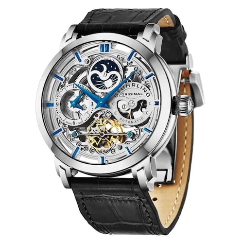 O relogio automatico Anatol 371L da marca Stuhrling e a escolha perfeita para quem busca sofisticacao e precisao. Com um mostrador prateado de 46 mm, o relogio e alimentado por uma serie interna de movimentos automaticos da marca, garantindo precisao dual time. O indicador AMPM animado e o submostrador do segundo fuso horario saltam do mostrador esqueletizado, proporcionando funcionalidade e estilo destemido. A pulseira de couro preto com fivela tang prata garante conforto incomparavel ao abracar o pulso. Com o Anatol 371L, voce viajara com estilo e elegancia. Dimensoes da embalagem 10,67 cm x 8,64 cm x 7,62 cm Fabricante St hrling Numero do modelo 371Leather.01 Numero da peca 371Couro.01 Peso do item 454 gramas