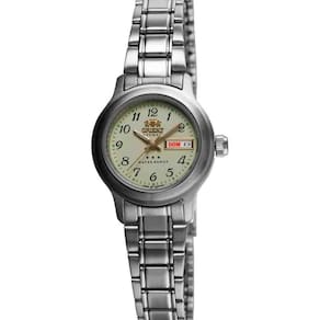ESPECIFICAÇÕES TÉCNICAS - Marca: Orient - Gênero: Feminino - Tipo de mostrador: Analógico - Função: Calendário com dia do mês e semana - Tipo de fecho: Dobrável com trava por pressão - Cor da caixa: Prata - Cor do mostrador: Bege - Cor da pulseira: Prata - Material da caixa: Aço inox - Material da pulseira: Aço inox - Largura da caixa: 2,7 cm - Espessura da caixa: 1,1 cm - Resistência à água: 3 ATM 30 m - Garantia: 12 meses