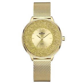 DESCRIÇÃO DO PRODUTO: Caixa de Metal Pulseira de Malha de Aço Mesh Vidro de Cristal Mineral Fundo de Pressão Resistente à Água 5 Atm Diâmetro / Largura da Caixa: 39.00 MM Funções: Analógico Alimentação do Maquinário: Bateria Mostrador com strass Maquina Japonesa