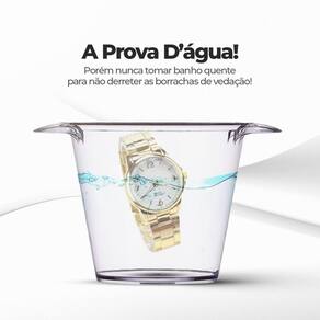 Relógio Banhado + Colar Pulseira Brinco Casual Social Qualidade Premium Presente Kit de Joias Feminino - Relógio Analógico Dourado Banhado a 18k + Colar, Brincos e Pulseira com Strass Transparente