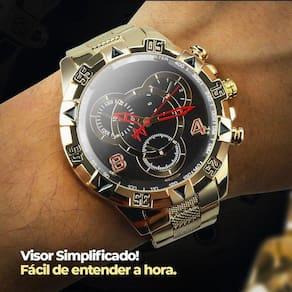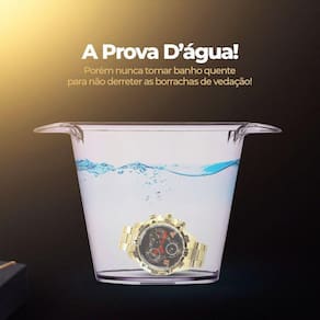 Seja o centro das atenções com este kit luxuoso e deslumbrante O relógio masculino dourado à prova d'água em aço inoxidável é a combinação perfeita entre beleza e funcionalidade, ideal para uso diário e feito com materiais de alta qualidade.