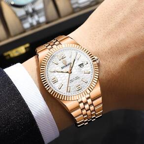 Descrição do Produto: Descubra a sofisticação e a funcionalidade com este relógio de quartzo masculino, um acessório que transcende o tempo com seu acabamento em dourado rosa deslumbrante. Projetado para o homem moderno, este relógio não é apenas uma peça de estilo, mas uma declaração de bom gosto e praticidade para o seu dia a dia.