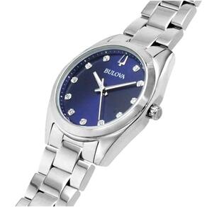 Relógio Feminino BULOVA Surveyor Diamantes Referência BULOVA do Brasil 96P229 Máquina movida a bateria / quartzo Mecanismo Analógico com 3 ponteiros Caixa do relógio em aço inoxidável prateado Pulseira de aço inoxidável prateado Fecho com botões laterais de pressão para abertura Mostrador azul com cristais Vidro de Cristal Mineral Relógio com ponteiros fosforescentes Coroa simples de pressão padrão sem rosca Tampa posterior de pressão Características Código 96P229 Ean 7909669145974 Gênero Feminino Caixa Redondo Estilo Fashion / Casual Tamanho / Percepção Pequenos entre 25 e 37mm Tipo de Mecanismo Analógico Linhas da Bulova DIAMANTES, SURVEYOR Caixa do Relógio Aço Inox Cor Predominante do Relógio Prateada Cor da Pulseira Prateada Cor do Mostrador Azul Tipo de Pulseira Aço Inox Modelo Mostrador Relógio com Cristais Tipo de Vidro Cristal Mineral Tipo de Coroa e Tampa posterior Coroa Simples, Tampa de Pressão Funções Relógio sem funções e sem calendário Resistência a Água 3ATM Garantia 24 meses Iluminação Noturna apenas Ponteiros Fosforescentes, Não possui iluminação Medidas do Relógio 30mm Ean: 7909669145974