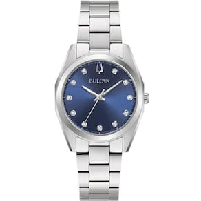 Relógio Feminino BULOVA Surveyor Diamantes Referência BULOVA do Brasil 96P229 Máquina movida a bateria / quartzo Mecanismo Analógico com 3 ponteiros Caixa do relógio em aço inoxidável prateado Pulseira de aço inoxidável prateado Fecho com botões laterais de pressão para abertura Mostrador azul com cristais Vidro de Cristal Mineral Relógio com ponteiros fosforescentes Coroa simples de pressão padrão sem rosca Tampa posterior de pressão Características Código 96P229 Ean 7909669145974 Gênero Feminino Caixa Redondo Estilo Fashion / Casual Tamanho / Percepção Pequenos entre 25 e 37mm Tipo de Mecanismo Analógico Linhas da Bulova DIAMANTES, SURVEYOR Caixa do Relógio Aço Inox Cor Predominante do Relógio Prateada Cor da Pulseira Prateada Cor do Mostrador Azul Tipo de Pulseira Aço Inox Modelo Mostrador Relógio com Cristais Tipo de Vidro Cristal Mineral Tipo de Coroa e Tampa posterior Coroa Simples, Tampa de Pressão Funções Relógio sem funções e sem calendário Resistência a Água 3ATM Garantia 24 meses Iluminação Noturna apenas Ponteiros Fosforescentes, Não possui iluminação Medidas do Relógio 30mm