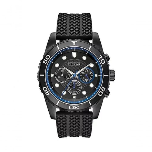 Relógio Bulova Classic Chronograph 98a211 MARCA BulovaGÊNERO MasculinoMODELO 98A211MOVIMENTO QuartzoTAMANHO DA CAIXA 43 mmESPESSURA DA CAIXA 12 mmnMATERIAL DA CAIXA Aço InoxidávelFORMATO DE CASO RedondoCASO DE VOLTA SólidoMATERIAL DA BANDA SiliconeCorreia TIPO DE BANDACOR DA BANDA PretaLARGURA DA BANDA 20 mmFECHO TangCOR DO DISCADOR PretoTIPO AnalógicoCRISTAL Mineral Resistente a RiscosMÃOS Luminosas em tom prateadoMARCADORES DE DISCAGEM PontoSEGUNDOS MARCADORES Marcadores de minutos ao redor da borda externaSUBDIAIS Três - 60 segundos, 30 minutos e 24 horasPonteiros e Marcadores de LUMINISCÊNCIABEZEL Rotação unidirecionalCOR DA BEZEL Banhado a pretoMATERIAL DA MOLDURA Aço InoxidávelRESISTÊNCIA À ÁGUA 30 metros / 100 pésFUNÇÕES Cronógrafo, Hora, Minuto, SegundoCARACTERÍSTICAS DO RELÓGIO Cronógrafo, Aço Inoxidável, AnalógicoESTILO CasualGARANTIA Garantia de 2 anosCÓDIGO EAN 042429559233