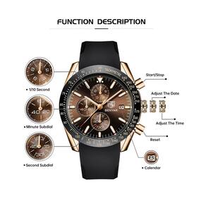 - ??CRONÓGRAFO E À PROVA D'ÁGUA?O submostrador multifuncional pode ser utilizado como temporizador (cronógrafos de segundos, minutos e horas). Os relógios cronógrafos masculinos à prova d'água da BENYAR são à prova d'água de 30 M/3 ATM, podem suportar suor, chuva acidental ou respingos de água (não é recomendado tomar banho, nadar e mergulhar na água). Depois de absorver energia luminosa suficiente para ter um certo efeito de brilho no escuro em ambientes escuros. É um relógio de couro multifuncional para homens.