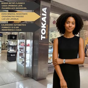 Medidas Tamanho da caixa: 3,74 × 3,55 cm Altura da caixa: 0,6 cm Largura da pulseira: 2,0 cm Comprimento da pulseira: 15 a 20,5 cm (ajustável) Peso do relógio: 50 g