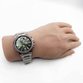 Características Formato do Relógio: Redondo Composição do Vidro: Cristal mineral Material da Caixa: Aço Inox Cor da Caixa: Cinza Cor do mostrador: Verde Material da Pulseira: Aço Inox Cor da Pulseira: Cinza Mecanismo: Analógico Multifunção
