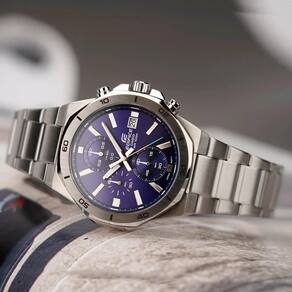 Funções: Visor de data / Cronômetro de 1/10 segundos / Horário regular Analógico: 3 ponteiros (hora, minuto e segundos), 3 mostradores (segundos, minutos e segundos do cronômetro) / Precisão: 20 segundos por mês