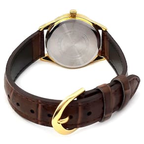 Características Formato do Relógio: Redondo Composição do Vidro: Cristal mineral Material da Caixa: Metal Cor da Caixa: Dourado Cor do mostrador: Preto Material da Pulseira: Couro Cor da Pulseira: Marrom Mecanismo: Analógico Quartz