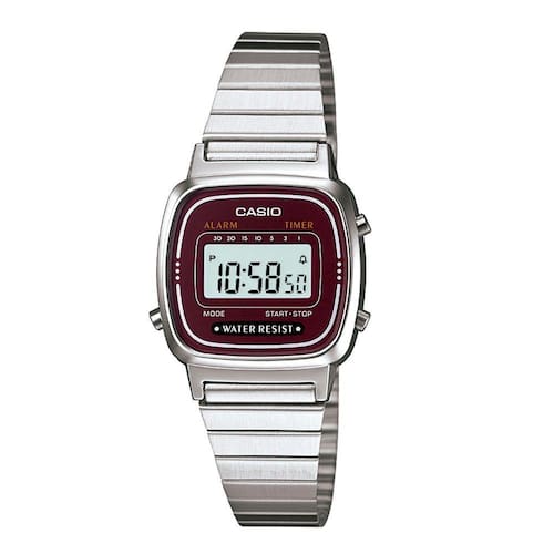 Relógio Casio Feminino LA670WA-4DF. Sistema Digital, Calendário Digital, Cronógrafo, Formato 12/24hs, Alarme Diário, Iluminação Noturna, Caixa e Pulseira em Aço, Mostrador Lcd, Resistente à água. Acompanha Garantia de Fábrica de Um Ano, Manual de Instrução e Nota Fiscal.