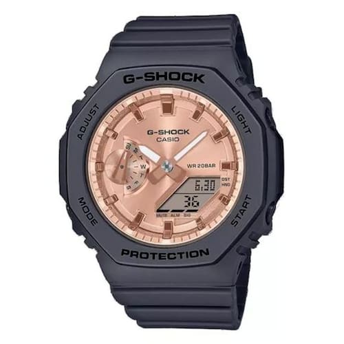 Relógio Casio G-shock Feminino GMA-S2100MD-1ADRCAIXA: Resina / CarbonoPULSEIRA: ResinaPULSEIRA: Largura de 20 mmPESO: 51 gramasMOSTRADOR: RoseCAIXA: 11.2 mm espessuraCAIXA: 42.9 mm diâmetroCAIXA: L2L de 46.2 mmMOVIMENTO: Quartz(bateria)Precisão: ± 15 segundos por mêsDuração da bateria: 3 anos em SR726W X 2FUNÇÕES: Hora, calendário, 5 alarmes, luz, 12/24 horas, cronometro, temporizador, sinal de hora em hora, recurso mudo.VIDRO: Cristal MineralFUNDO: Aparafusado resistência a água de até 200 metrosCOROA: BotõesINFORMAÇÕES ADICIONAIS: Resistente a choques, calendário automático até o ano 2099, estrutura principal em carbon core guard