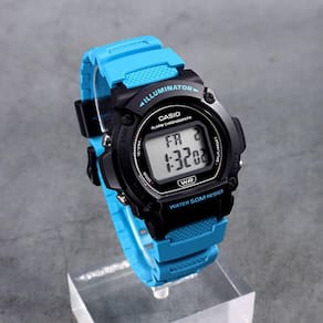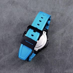 Características Formato do Relógio: Redondo Composição do Vidro: Acrílico Material da Caixa: Resina Cor da Caixa: Preto Cor do mostrador: Preto Material da Pulseira: Borracha Cor da Pulseira: Azul Mecanismo: Digital