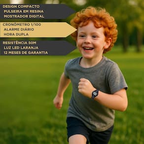 O Casio Digital LW-203 é um relógio unissex prático, resistente e pensado para o dia a dia. Seu design leve combina caixa e pulseira em resina, garantindo conforto e durabilidade. O visor digital de fácil leitura oferece hora, minuto, segundo, dia e data, além de recursos como cronômetro de 1/100s, alarme diário, sinal sonoro a cada hora e calendário automático completo até 2099. A iluminação em LED laranja proporciona ótima visualização em ambientes escuros. Com resistência à água de até 50 metros, é indicado para atividades leves como natação e banho frio. A bateria tem vida útil aproximada de 10 anos, tornando o modelo altamente confiável e econômico. Uma escolha versátil e funcional para quem busca estilo casual aliado à tecnologia Casio.