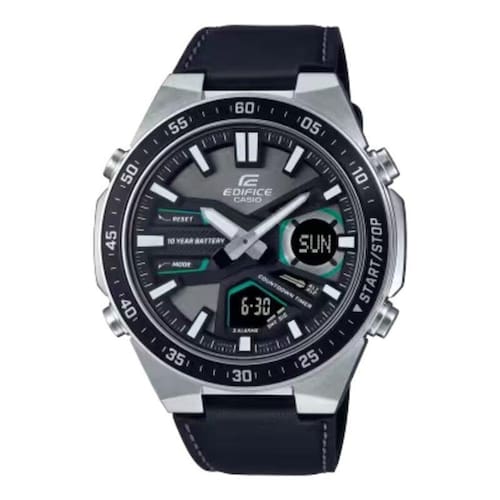 Marca: casio Modelo: efv-620l-1avudf Tipo de relógio: Analógico Gênero: masculino Estilo: casual Calendário: sim Cronômetro: sim Alarme: não Luz: não - ponteiros e marcadores fluorescentes Resistência à água: Sim - 10 ATM = 100 metros Tipo de fecho: Fivela Simples Material da Caixa: Aço Inoxidável Material da Pulseira: Couro Características do vidro: Vidro mineral Tamanho da caixa C L A : 55 50.5 11.8 mm Peso do produto: 94 Gramas Cor da pulseira: Preto Cor da caixa: Prateado Alimentação: bateria Garantia do Fabricante: 12 meses Fabricante: casio