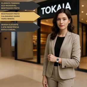 O Casio LTP-1302PD-1A1V é um relógio feminino que combina elegância e durabilidade com a assinatura tradicional da Casio. Seu mostrador preto com marcadores prateados cria um contraste sofisticado e de fácil leitura. A caixa e a pulseira em aço inoxidável proporcionam brilho refinado e resistência superior. O vidro mineral garante proteção contra riscos leves, enquanto a resistência à água de até 5 ATM assegura desempenho confiável no uso diário. Com calendário posicionado às 3h e acabamento impecável, este modelo é o equilíbrio perfeito entre estilo clássico, conforto e funcionalidade moderna.