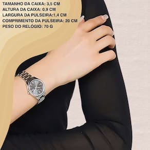 O Casio LTP-1302PD-1A1V é um relógio feminino que combina elegância e durabilidade com a assinatura tradicional da Casio. Seu mostrador preto com marcadores prateados cria um contraste sofisticado e de fácil leitura. A caixa e a pulseira em aço inoxidável proporcionam brilho refinado e resistência superior. O vidro mineral garante proteção contra riscos leves, enquanto a resistência à água de até 5 ATM assegura desempenho confiável no uso diário. Com calendário posicionado às 3h e acabamento impecável, este modelo é o equilíbrio perfeito entre estilo clássico, conforto e funcionalidade moderna.