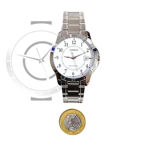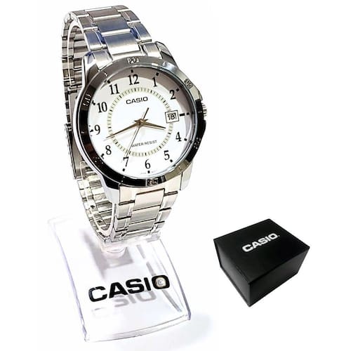 Marca: Casio Modelo: MTP-V004D-7BUDF Tipo de relógio: Analógico Gênero: Masculino Cor da caixa: Prateado Cor da pulseira: Prateado Estilo: Casual Alarme: Não Cronômetro: Não Calendário: Sim Luz: Não Resistência à água: Sim – rotinas diárias Tipo de fecho: Dobrável Material da Caixa: Aço Inoxidável Material da Pulseira: Aço Inoxidável Características do vidro: Cristal Mineral Tamanho da caixa (A × L × E): 47 × 41.5 × 8.3 mm Peso: 96 g Comprimento da pulseira: 23 cm Largura da pulseira: 18 mm Tampa do fundo: Pressão Alimentação: Bateria Garantia do Fabricante: 12 meses Fabricante: Casio