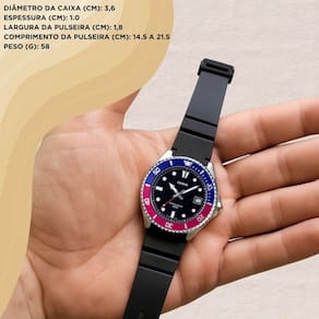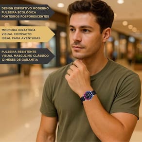 Explore com estilo o cotidiano e aventuras com o relógio MDV-10-1A2V. Seu visual esportivo combina robustez e modernidade em um formato mais compacto, oferecendo conforto e presença no pulso. O design clássico de ponteiros é complementado por uma moldura giratória e ponteiros fosforescentes, perfeitos para ambientes com pouca luz. A pulseira em resina de base biológica reforça o compromisso com sustentabilidade, sem abrir mão da resistência. Perfeito para quem busca praticidade e estilo, com resistência à água de até 50 metros, ideal para atividades leves ao ar livre e uso diário.