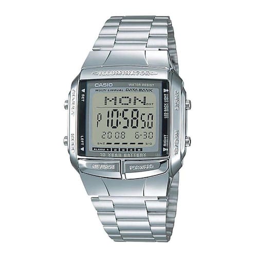 Relógio Casio Masculino Data Bank Digital Prata DB-360-1ADFRecursos:10 anos de duração da bateria30 registros de MEMÓRIA TELEFÔNICAO recurso memória de dados oferece suporte para entrada de caracteres em qualquer um dos 13 idiomas.Fundo luminoso LEDHora duplaResistente a águaEspecificações:Material do corpo/anel: resinaMaterial do corpo/anel: Resina / CromadoPulseira de Aço InoxidávelTipo de Fecho: GanchoVidro com resinaResistente a águaFundo luminoso LEDPersistência luminosaMemória telefônicaCapacidade de memória: até 30 grupos de dados, com nome de 8 caracteres e telefone de 15 dígitosOutros: Tela de memória restante, classificação automática, aceita caracteres de 13 idiomas (Inglês, português, Espanhol, francês, Dutch, dinamarquês, alemão, Italiano, Sueco, polonês, Romeno, Turco, Russo)Hora duplaCronômetro de 1/100 segundoCapacidade de medição: 23:5959.99Modos de medição: Tempo transcorrido, divisão de tempo, hora no 1º e 2º pontoTemporizadoresFaixa de entrada: 1 minuto a 24 horasUnidade: 1 segundoAlarmes multifuncionais5 alarmes multifuncionais independentesRecurso Soneca para apenas um alarme (até 7 repetições a intervalos aproximados de 5 minutos)sinalização a cada horaCalendário automático (até o ano 2039)Formatos 12/24 horasHorário regular: Hora, minutos, segunda, am/pm (post meridiem), ano, mês, data, dia, horário de verão (liga/desliga)Precisão: ±30 segundos por mêsDuração aprox. da bateria: 10 anos com CR2025Medidas:Diâmetro da caixa: 4,3x3,8cmEspessura da caixa: 1,0cmEspessura da pulseira: 2,2cmTamanho da pulseira: 20cmPeso do relógio: 58gConteúdo da Embalagem:Estojo da MarcaAcessórios (correspondentes a cada modelo)Manual em PortuguêsCertificado de Garantia do FabricanteNota Fiscal EletrônicaFornecedor: Casio Brasil Comércio Produtos Eletrônicos Ltda. CNPJ:10.172.255/0001-95Garantia da Fabricante: Garantia de 1 Ano com o Fornecedor